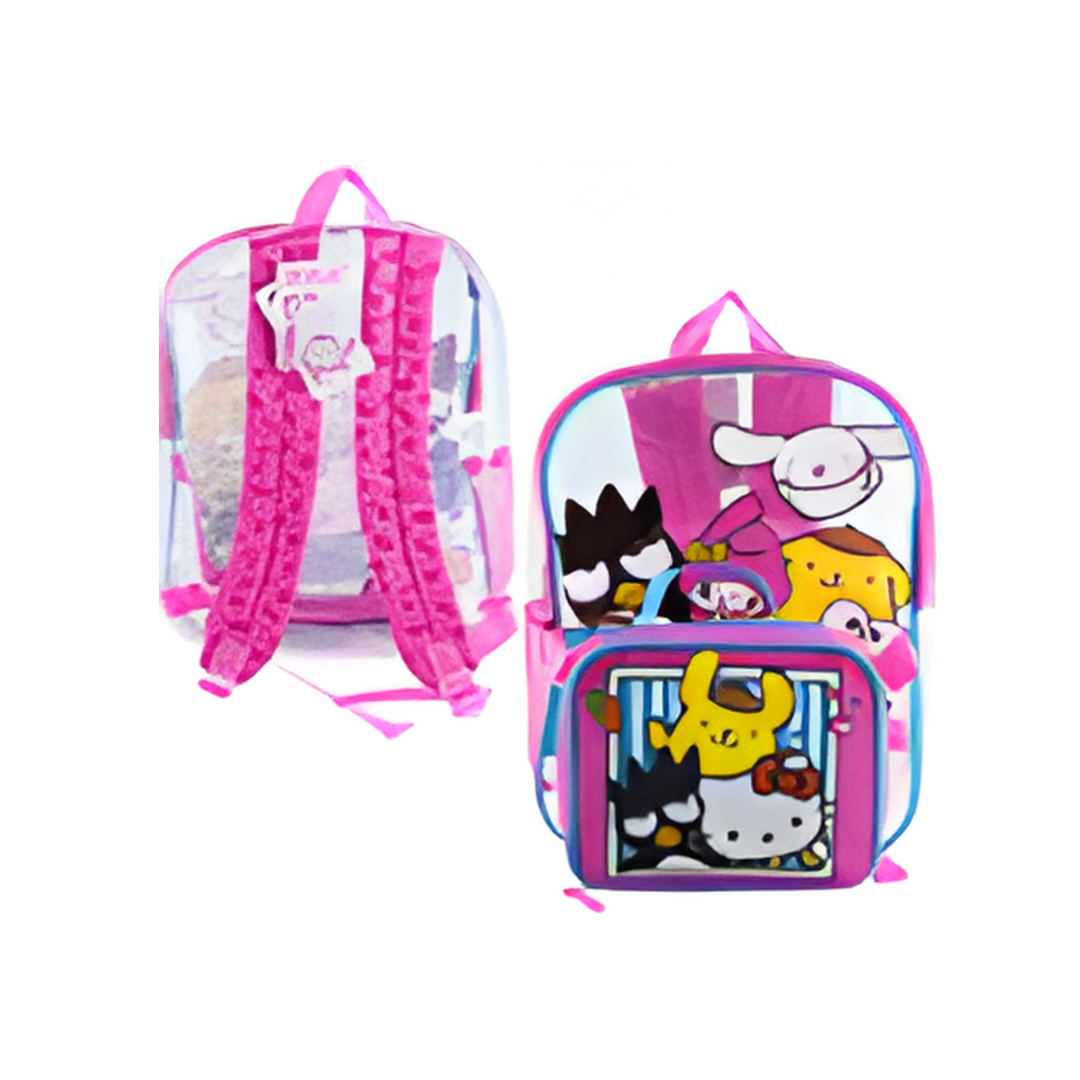 Bring charm and fun to every school day with the BACKPACK, 15" HK & FRIENDS w/LUNCH! This delightful backpack features Hello Kitty and her lovable friends in a colorful, eye-catching design. The matching insulated lunch bag keeps meals fresh and easily attaches to the backpack, making it perfect for school, travel, or day trips. Durable and comfortable, it’s a must-have for young Hello Kitty fans.
