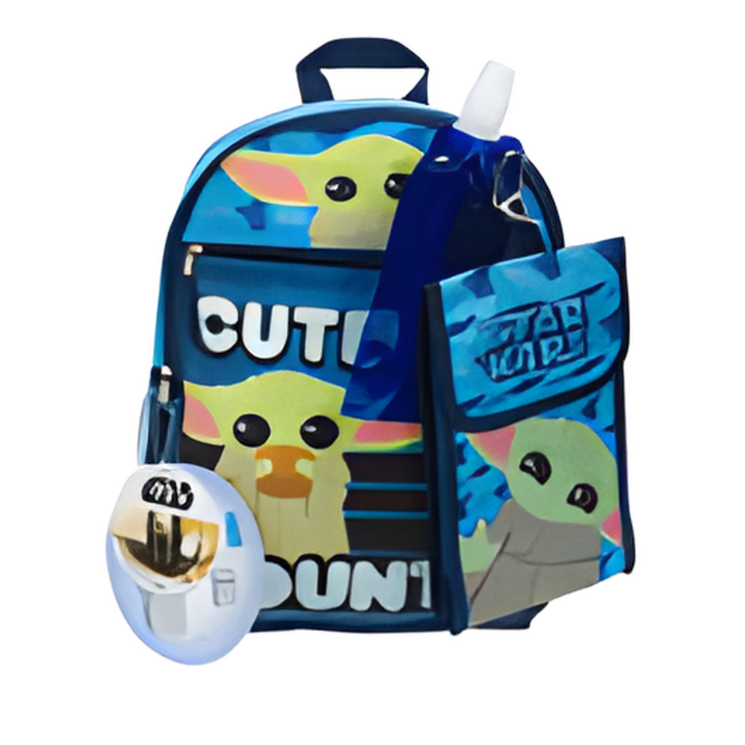 This 5-piece 16" Large Mandalorian Backpack Set is perfect for young Star Wars enthusiasts. The set includes a spacious backpack, matching lunch bag, pencil case, water bottle, and keychain, all featuring Baby Yoda (Grogu) and Mandalorian-themed designs. Durable and fun, it’s ideal for school, travel, or everyday galactic adventures!