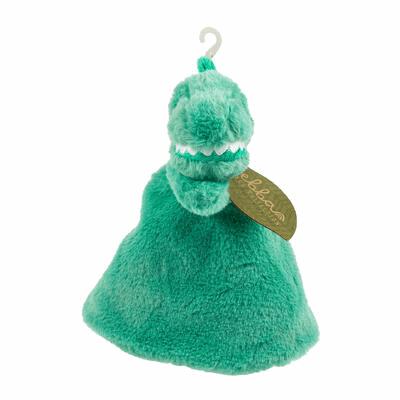 Offer a prehistoric pal for comfort with this adorable 12-inch Ryker Rex Luvster Plush. This item functions as a security blanket, combining a cute T-Rex head and tiny arms with a soft, triangular, blanket-style body. It's crafted from incredibly soft, shaggy emerald green plush material, providing an exceptionally soothing and huggable texture. The T-Rex head features gentle stitched eyes and little white fabric teeth, giving it a friendly grin. Perfectly sized for small hands, this item is an ideal companion for snuggling, soothing, and comforting infants and toddlers.